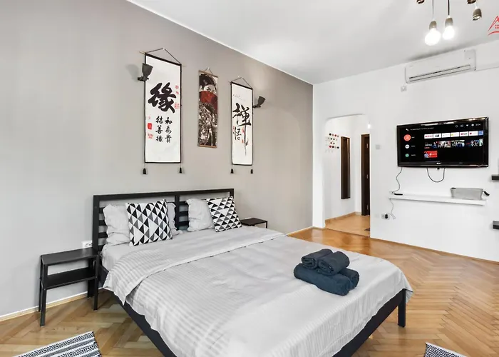 它距离大学广场0.8公里, 而且距离尤舒塔瓦犹太教堂只有1.7公里的路程. 它位于Bucharest CityCentre区,所以可以快速到达科尔特医院. 客人可以在Crama Domneasca尝尝东欧佳肴.它距离公寓仅100米. 公寓附近有罗马尼亚人民宫;啤酒马车也在它旁边.